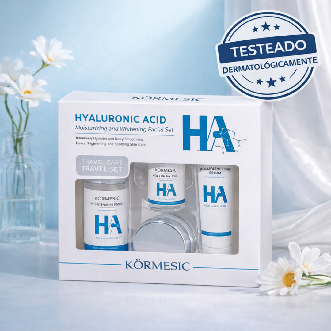 El set de Ácido Hialurónico hidrata por más tiempo gracias a su fórmula de triple peso molecular, que actúa en distintas capas de la piel, suaviza y rellena la superficie y ayuda a restaurar el volumen y proteger el colágeno.